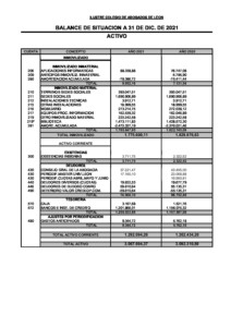 Inicio|Convocatoria primera Junta General Ordinaria 2022.|Balance de situación y cuentas de pérdidas y ganancias del ejercicio 2021